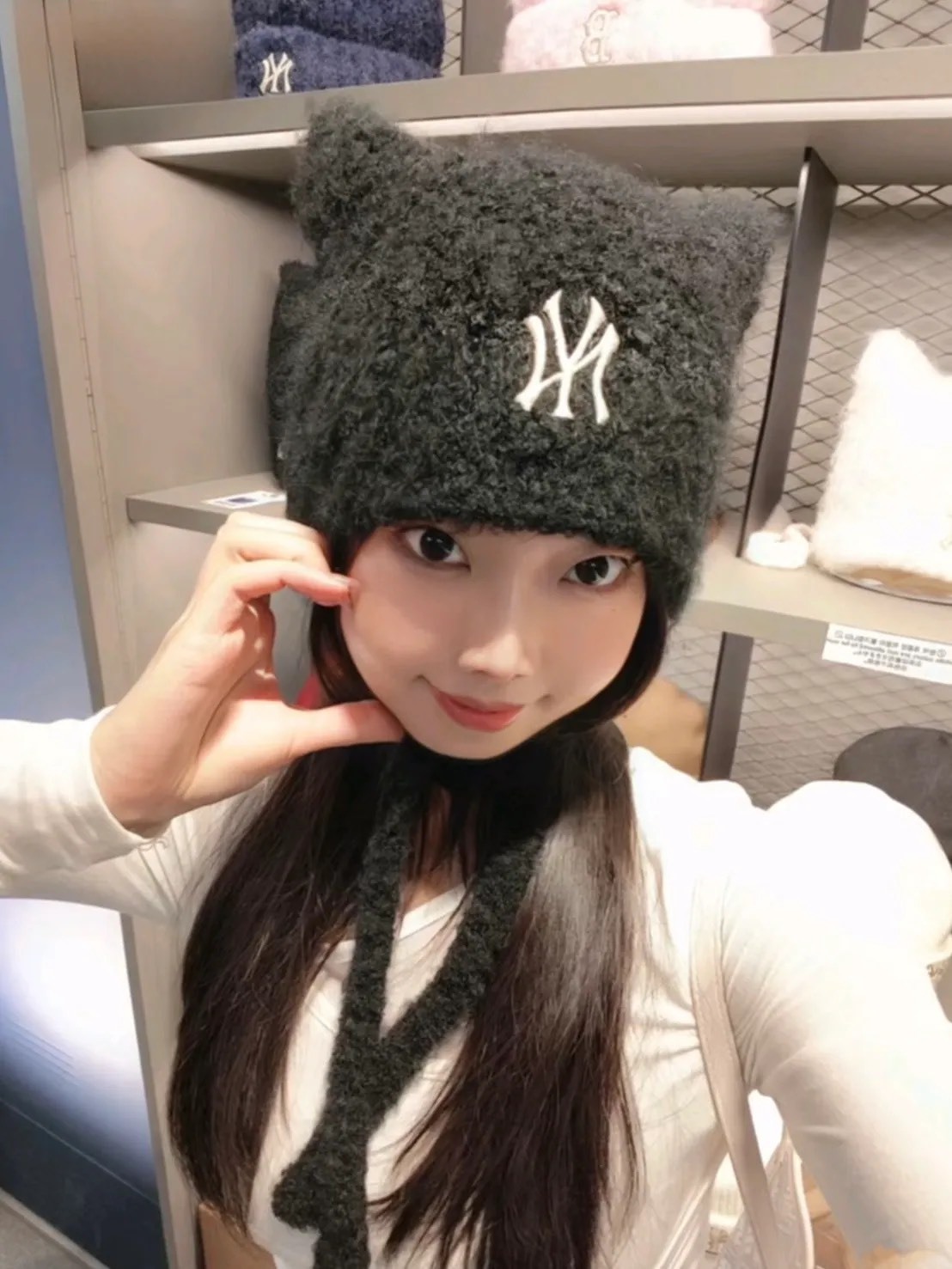 MLB 綁帶 貓耳 毛帽